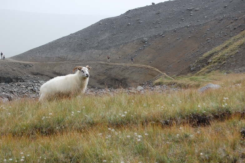 die Islandschafe, überall zu finden, sie treten die Wanderwege, die der Mensch dann nutzt