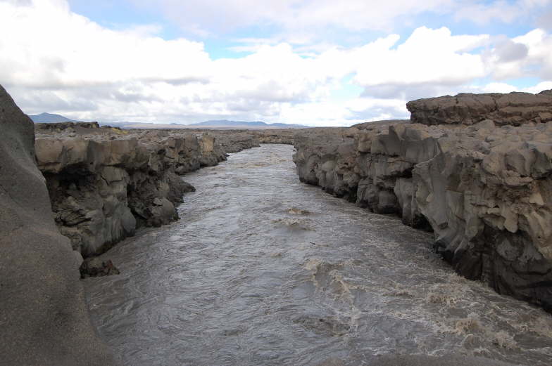 imposant der Kanal, den solch ein Fluss durch Lavafelder gräbt