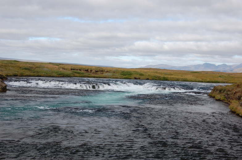 Dynjandi, ein flacher “Wasserfall” in der Nähe von Laugaras, es entsteht drum rum eine grosse Ferienhausanlage