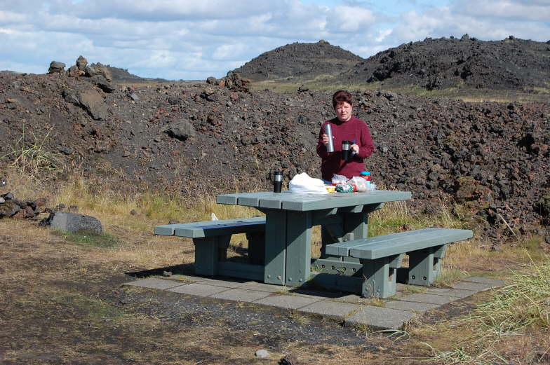 Rastplatz im Lavafeld Eldhraun, entstanden 1783 bei einem Vulkanausbruch